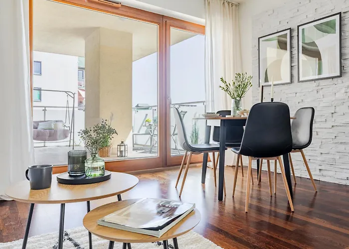 The spacious Superapart Powstancow Slaskich 89B Warsaw apartment is nestled in the Bemowo district, right around the corner from the grill bar Fresh Beef Burgery. Guests can relax and take in city views from a terrace of this apartment.
